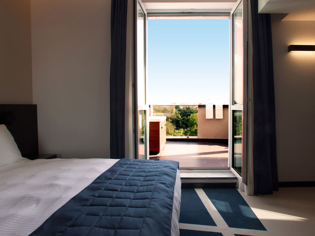 Con una vista a quasi 180 gradi su Milano, le Skyline Executive dell’ultimo piano sono state disegnate per viaggiatori di “lusso”. Le camere offrono comfort di altissima qualità con arredamenti e soluzioni personalizzate.