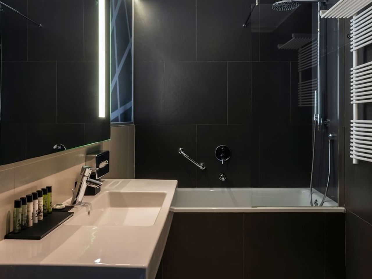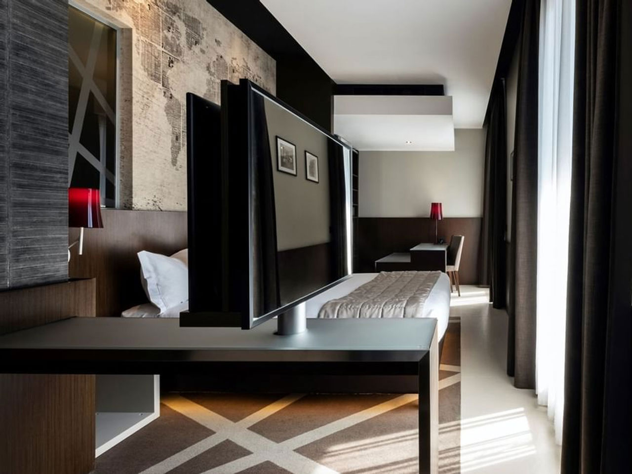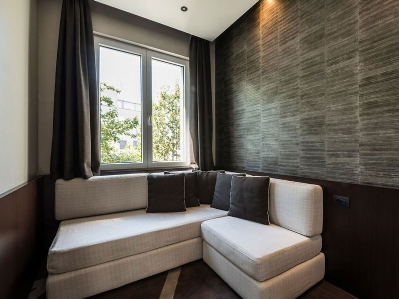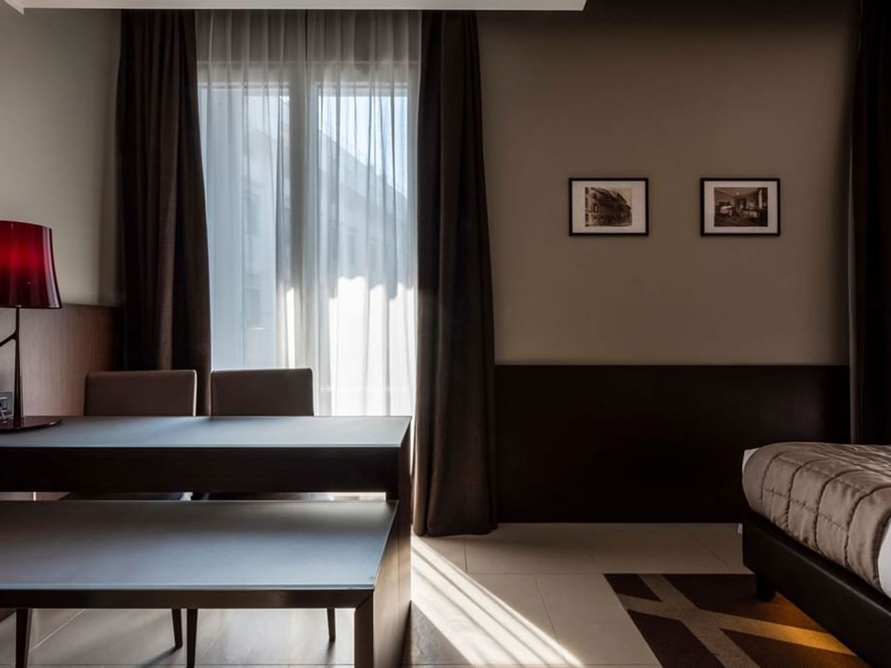 All rooms are soundproofed and equipped with lava stone bathrooms with comfortable porcelain sinks, bathtub with shower, bathrobes and slippers, high-voltage hairdryer, make-up mirror, courtesy line based on plant extracts, large desk suitable for those who need to work on their laptop, free mineral water, welcome gift, minibar, Wi-Fi connection, 43" LCD satellite TV, combination safe, extra-comfort memory foam mattresses, tea kettle, and Nespresso machine.